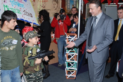 Прашањето за уставното име на Македонија го засени интересот за УнијатаШто е Европска Унија? Кои се земјите членки на ЕУ? Која е целта на проширувањето на ЕУ? Кои се симболите и химната на ЕУ? Зошто е создадена Европската Унија? Ова се некои од прашањата кои им се поставуваат на основците и средношколците од 102 училишта во земјава, како дел од кампањата “Учиме за ЕУ”, којашто ја реализираат Секретаријатот за европски прашања во Владата и Министерството за образование и наука. |  |